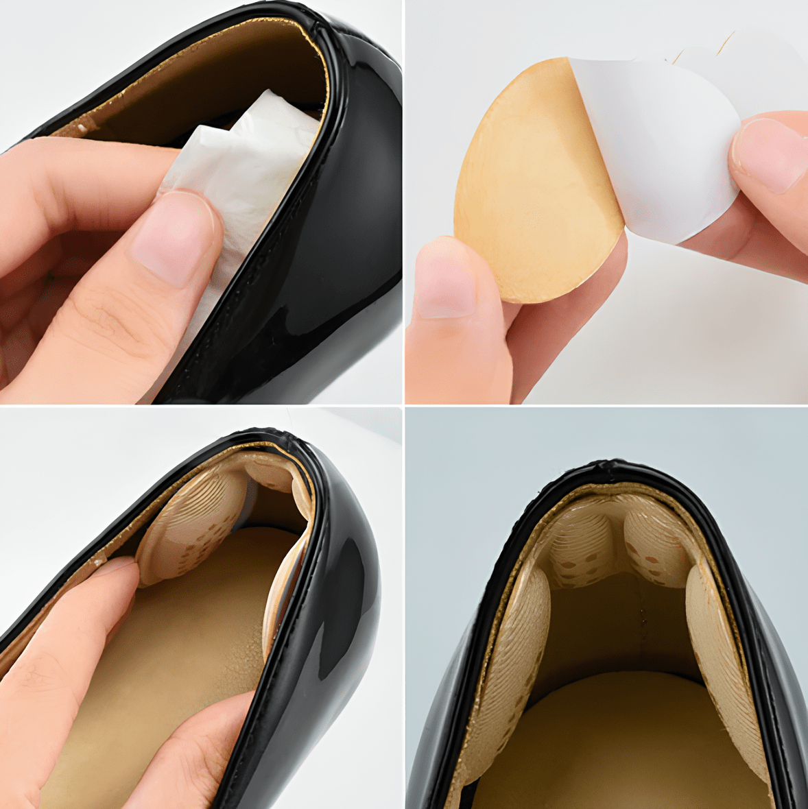 Fini les douleurs et les ampoules à chaque pas ! Nos coussinets auto-adhésifs pour chaussures sont spécialement conçus pour offrir un confort optimal tout en protégeant vos pieds des frottements. Discrets, souples et faciles à poser, ils s’adaptent à toutes vos chaussures : escarpins, ballerines, mocassins ou bottines, pour que vous puissiez marcher avec élégance et sans souffrir.